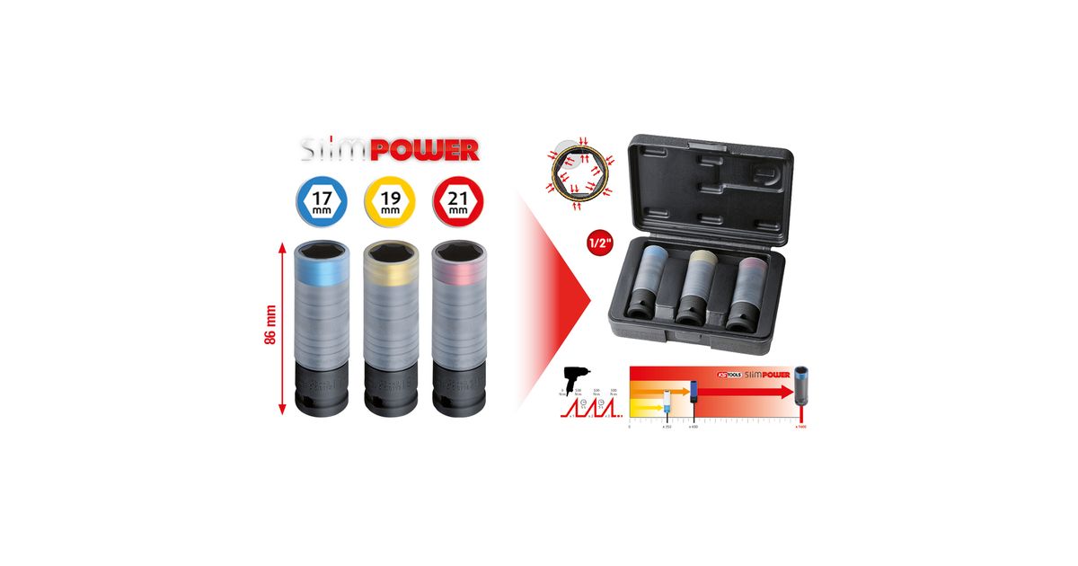 KS Tools 515.0990, Pistikupesa komplekt, 1/2", 3 pea(d), Kroom-molübdeenteras, ISO 1174, DIN 3121, 791 g