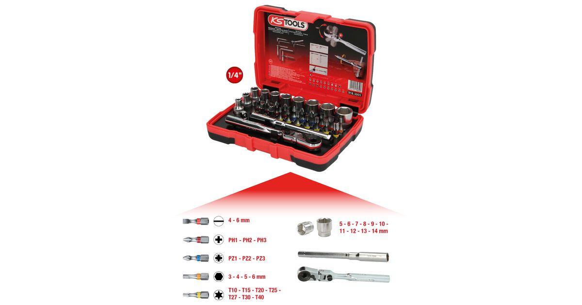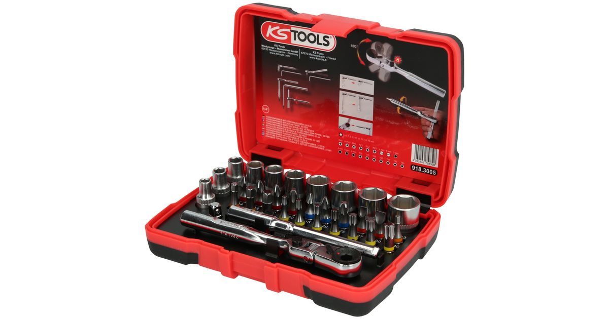 KS Tools 918.3005, Pistikupesa komplekt, 33 pea(d), Kroom-vanaadiummetall, DIN 3126, ISO 1173 - C 6,3, 405 g