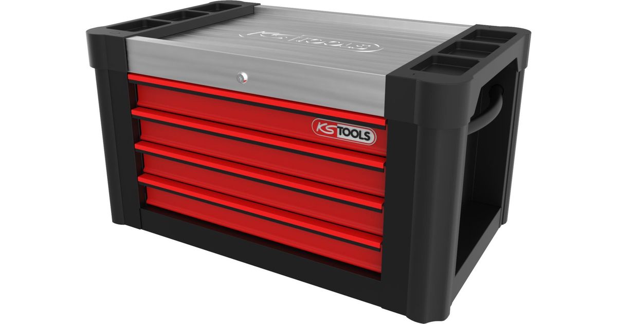 KS TOOLS Werkzeuge-Maschinen GmbH PERFORMANCEplus SCHWARZ/ROT Werkstattwagenaufsatz mit 4 Schubladen (873.0004)
