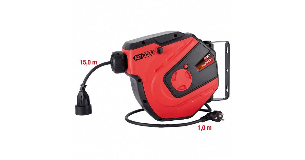 KS TOOLS Werkzeuge-Maschinen GmbH Werkstatt-Kabelaufroller, 15m, 1,5mm² (150.4217) - Elekter - Kaablirullid / voolikurullid - Tööriistad ja tarvikud - MT Shop