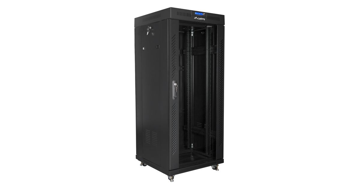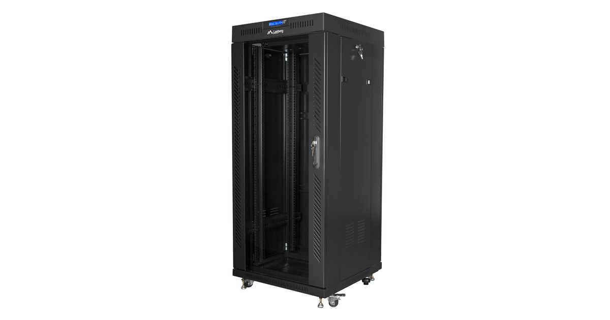 Lanberg free standing rack 19inch cabinet 27U 600x600 glass door LCD flat pack black, Eraldiseisev serverikapp, 27U, 800 kg