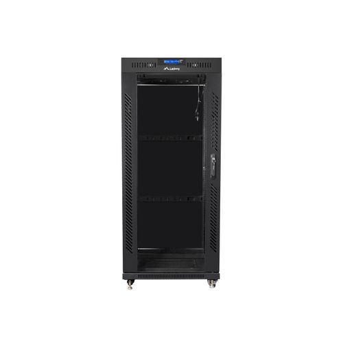 Lanberg free standing rack 19inch cabinet 27U 600x600 glass door LCD flat pack black Eraldiseisev serverikapp