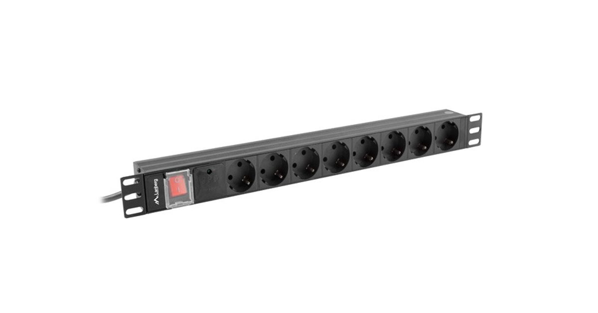 Lanberg PDU-08F-0200-BK, Lülitatud, 1U, Ühefaasiline, Horisontaalne, Alumiinium, Must