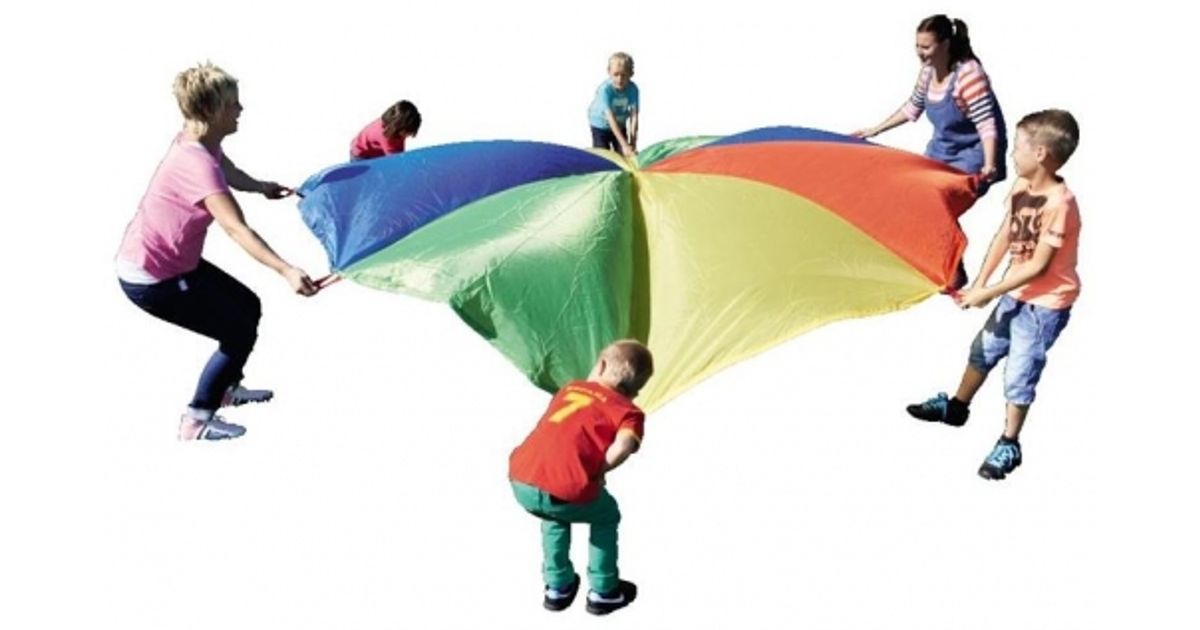 Langevarjuga treenid kogu keha. See arendab koordinatsiooni ja koostööd. Kaasas ideid varju kasutamiseks. 8 kinnihoidmise sanga. Nailon, pesu 30 °C.