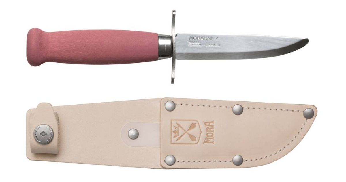 Laste nuga Morakniv Scout 39 Safe, topelt sõrmekaitse ja nahast vutlariga, punane