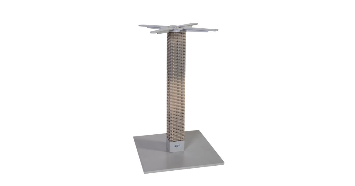 Alus 40x40cm alumiiniumkattega terasplaat, tugipost 8x8cm, alumiinium kaetud plastikpunutisega, värvus: hall. Toode on ilmastikukindel. HoReCa soovitus. Plastikpunutise värvikood: YJ3189.