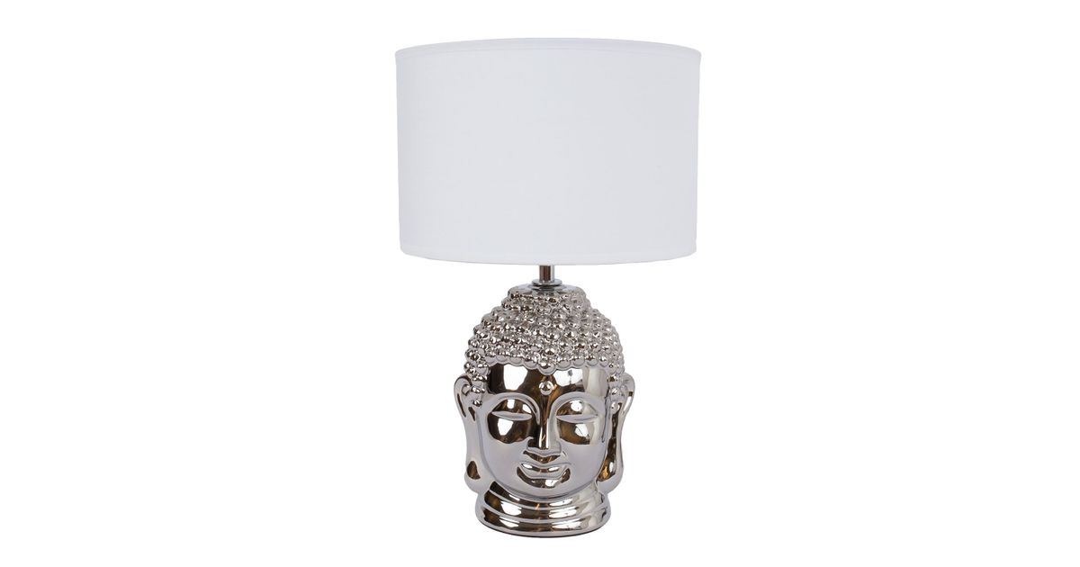 Laualamp BUDDHA H34,5cm, kuppel: valge, jalg: hõbedane keraamika
