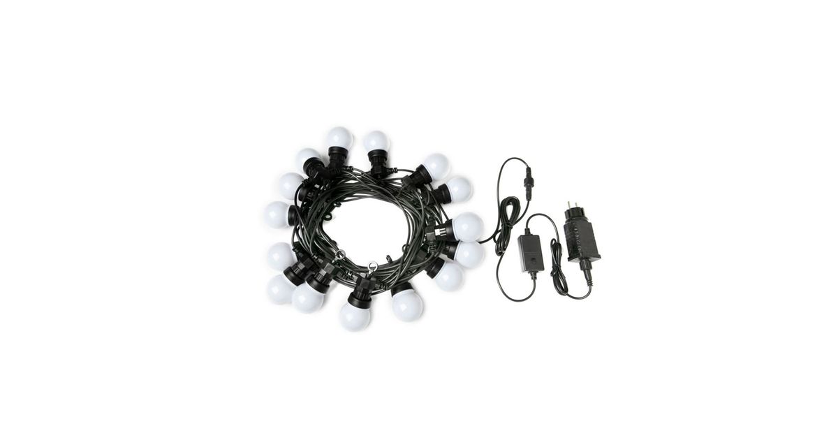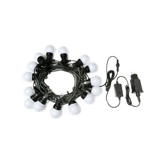 The Light Chain provides an individual ambience, not only inside your home, but also outside, especially in the garden. The power supply is protected against splashing water according to IP44, the light chain itself is waterproof according to IP65. Thanks to this nothing stands in the way of outdoor use.