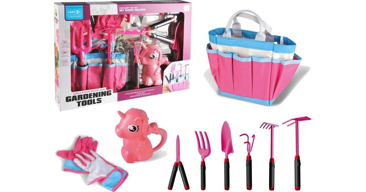 LeanToys Aiakomplekt Kott Tööriistad Kindad Reha Roosa Ükssarvik