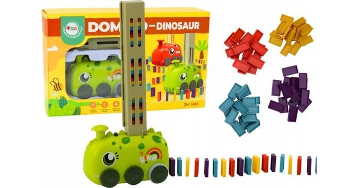 LeanToys akuga töötav roheline dinosaurusauto, kuhjatav värvilised doominod, 4 värvi plokke