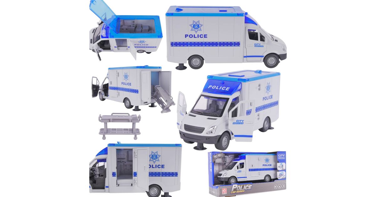 LeanToys Ciężarówka Karetka Policyjna Policja Nosze Otwierane Drzwi Dźwięk Światło