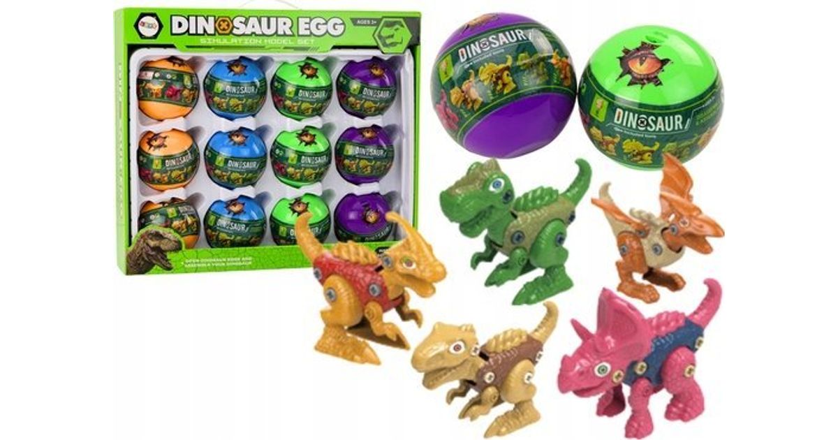 LeanToys dinosauruste veeretavad munad, 12-osaline värviline komplekt