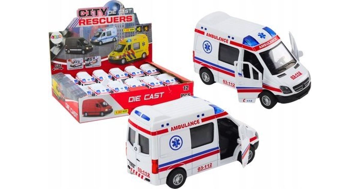 LeanToys Kiirabi Kiirabi 1:32 Uste avanemine Tuled Helid Sõidab valge