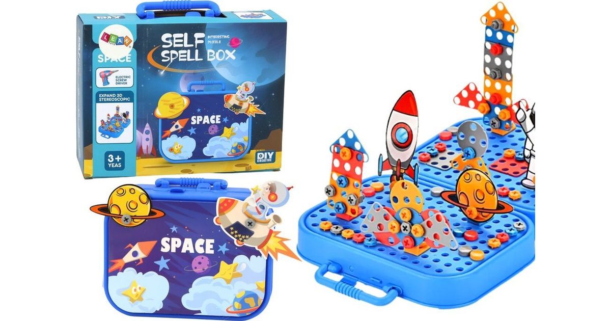 LeanToys kohvrikomplekt DIY Puzzle Ehitusklotsid Ruumikruvikeeraja 228 tk.