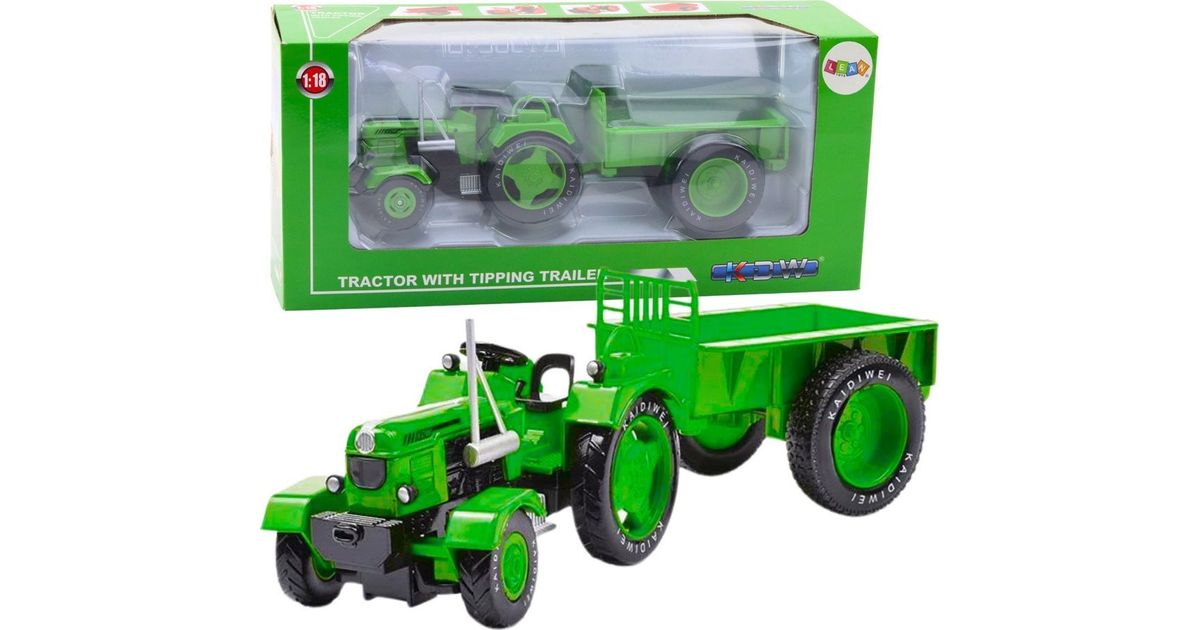 Leantoys metallist põllumajandustraktor rohelise treileriga 1:18