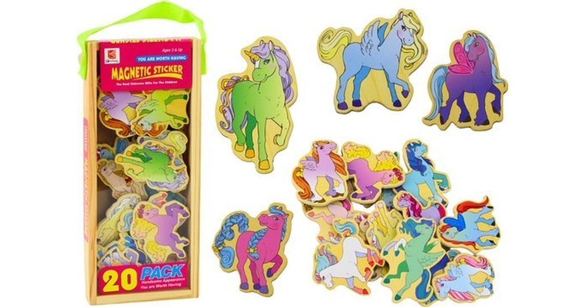 LeanToys puidust magnetite komplekt, värvilised ükssarved, 20 tk