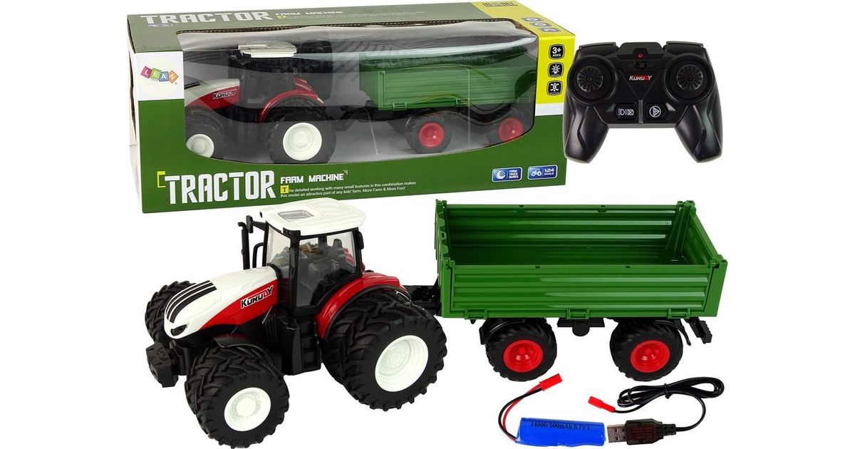 LeanToys Traktor Zdalnie Sterowany z Przyczepą 1:24 Czerwony Zielony