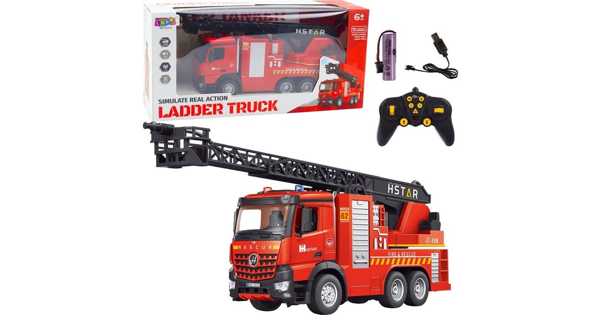 Leatotoys tuletõrjeveoauto sissetõmmatav redel pihustav vesi 2,4g 11CH