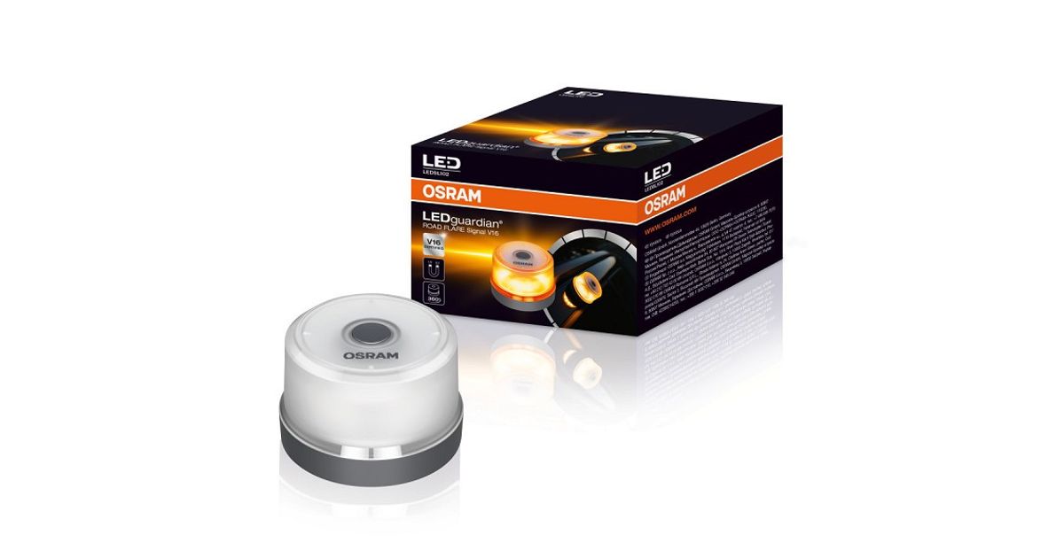 OSRAM LEDguardian ROAD FLARE vilkur. mis vastab V16 regulatsioonidele. Vilkuril on 9 eredat LED dioodi. mis on nähtavad pimedas ja valges kuni 1 km kaugusele. Kompaktse disainiga. Kaasasoleva 9 V patareiga ning magnetalusega on vilkuri hoiustamine ning hädaolukorras paigaldamine mugav ning muretu. IP54 vee-. tolmu-. temperatuuri- ning löögikindel.