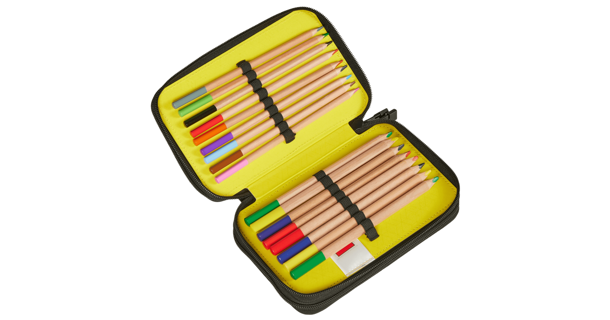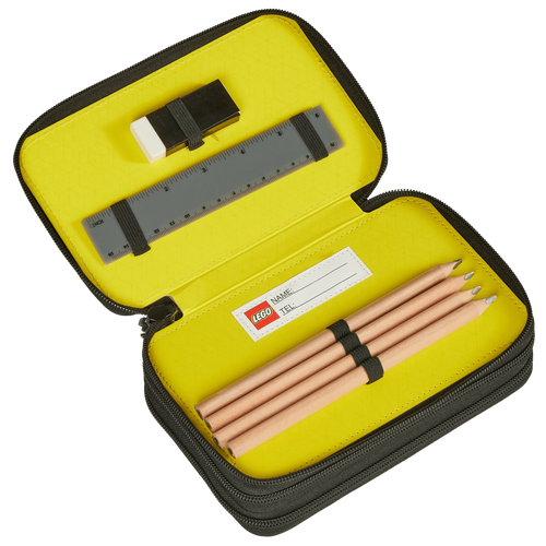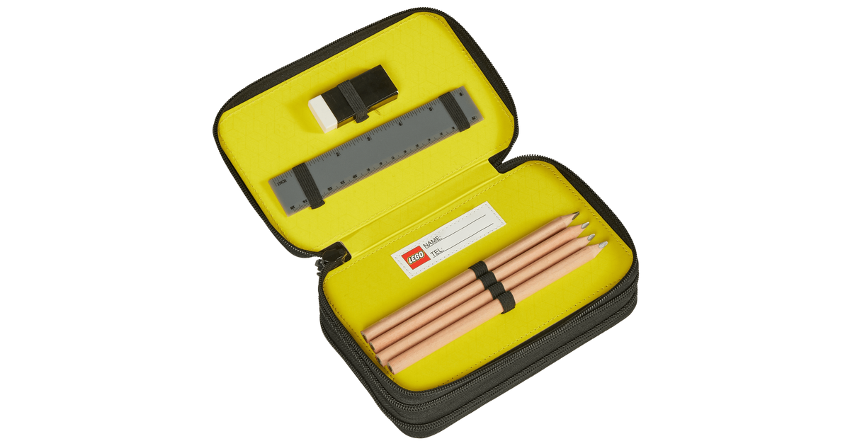 See mahukas LEGO® pinal aitab hoida koolitarbed korras ja käepärast. Kolm lukuga taskut pakuvad rohkelt ruumi pliiatsitele, vildikatele, kustukummile ja muudele kirjutusvahenditele. Komplektis on CE-sertifikaadiga tarvikuid: 4 harilikku pliiatsit, 2 paksemat pliiatsit, 18 värvipliiatsit, 4 paksemat värvipliiatsit, kustukumm, teritaja, joonlaud ja kolmnurk. 1x1 LEGO® klotsi kujulised lukutõmbajad teevad avamise lihtsaks ja lisavad vahva detaili.