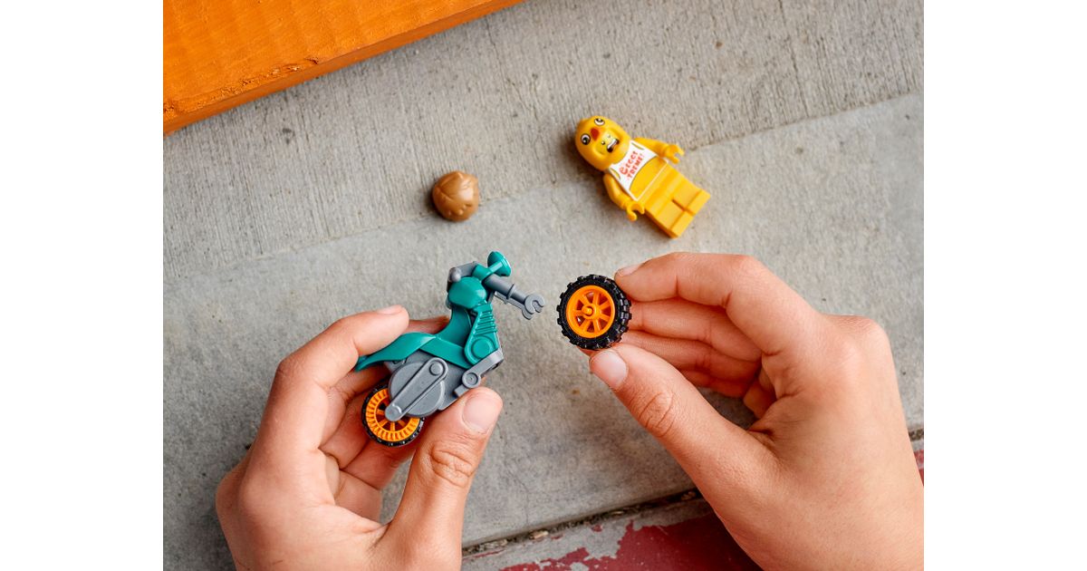 Rohkelt põnevat tegevust pakkuv LEGO® City kanakostüümis sõitjaga trikimootorratta (60310) mängukomplekt sisaldab lahedate esirattatõstete ja kõrgelennuliste trikkide korraldamiseks vinget mängumootorratast. Selle abil võid telesarja „LEGO City Adventures“ kanakostüümis tegelaskuju Clemmonsiga korraldada ülinaljakad trikietendused.