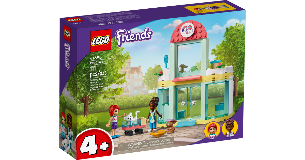 4+ vanusele mõeldud kokkupandavad mängukomplektid võimaldavad täiskasvanutel ja lastel loomingulist LEGO maailma üheskoos avastada. Lapsed saavad koti avamise järel kohe mängu alustada, kuna iga klotsikott sisaldab mõnda tegelast või armsat mängulooma ja minimudelit. Lapsed ei vaja mudeli kokkupanekuks palju täiskasvanute abi, sest selle loomaarsti kliinikuga on kaasas hõlpsalt järgitavad piltjuhendid, et ehitamine oleks lihtne isegi nendele lastele, kes alles õpivad lugema. Tutvusta lastele LEGO Friends mängukomplekte, mille abil nad saavad oma huvisid koos sõpradega avastada.