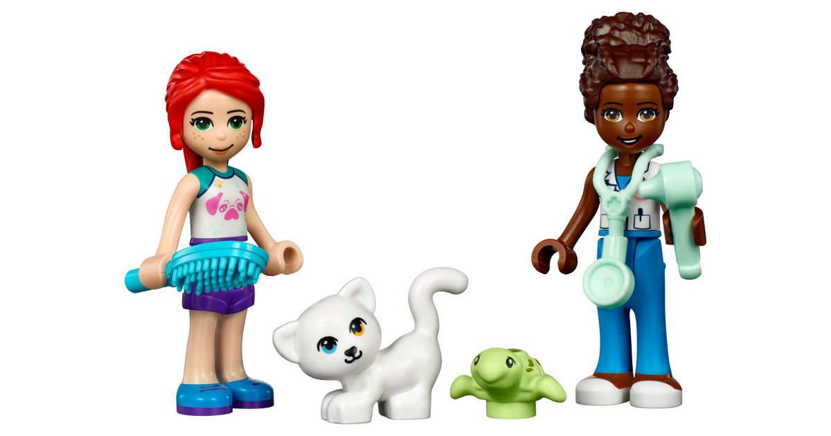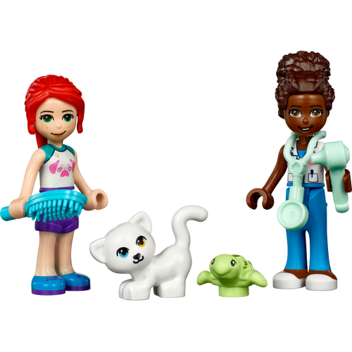 - Sisaldab innustavaid detaile – komplektis on kaks mininukku (sh LEGO® Friends Mia), mängukass, -kilpkonn ja -jänes, lisaks palju loomaarsti varustust, tänu millele jagub mängurõõmu tundideks