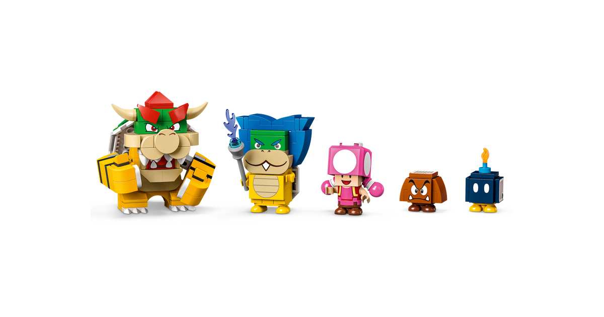 - Viis LEGO® Super Mario™ mängufiguuri – Bowser, Ludwig, Toadette, Goomba ja Bob-omb