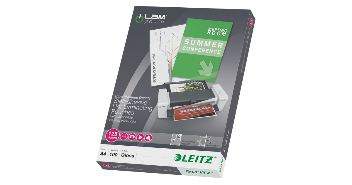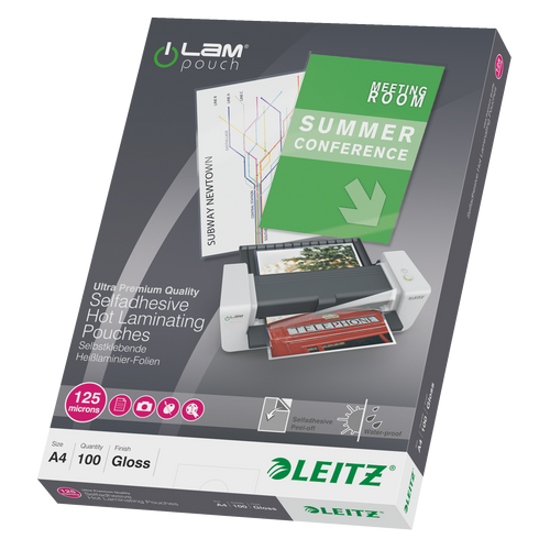 Leitz 16925, Läbipaistev, EVA (etüleenvinüülatsetaat), Polüetüleentereftalaat (PET), Läikiv, A4, 0,125 mm, 222 mm