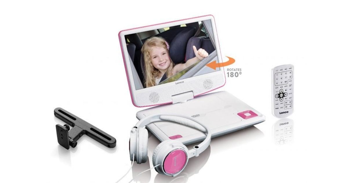 Lenco DVP-910, Kaasaskantav DVD mängija, Muudetav, Must, Roosa, CD, DVD, 22,9 cm (9"), TFT-ekraan
