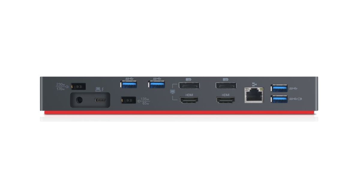 Lenovo ThinkPad Thunderbolt 3 Workstation Gen 2, Juhtmega ühendatud, Thunderbolt 3, 10,100,1000 Mbit/s, Must, 3840 x 2160 pikslit, Lenovo