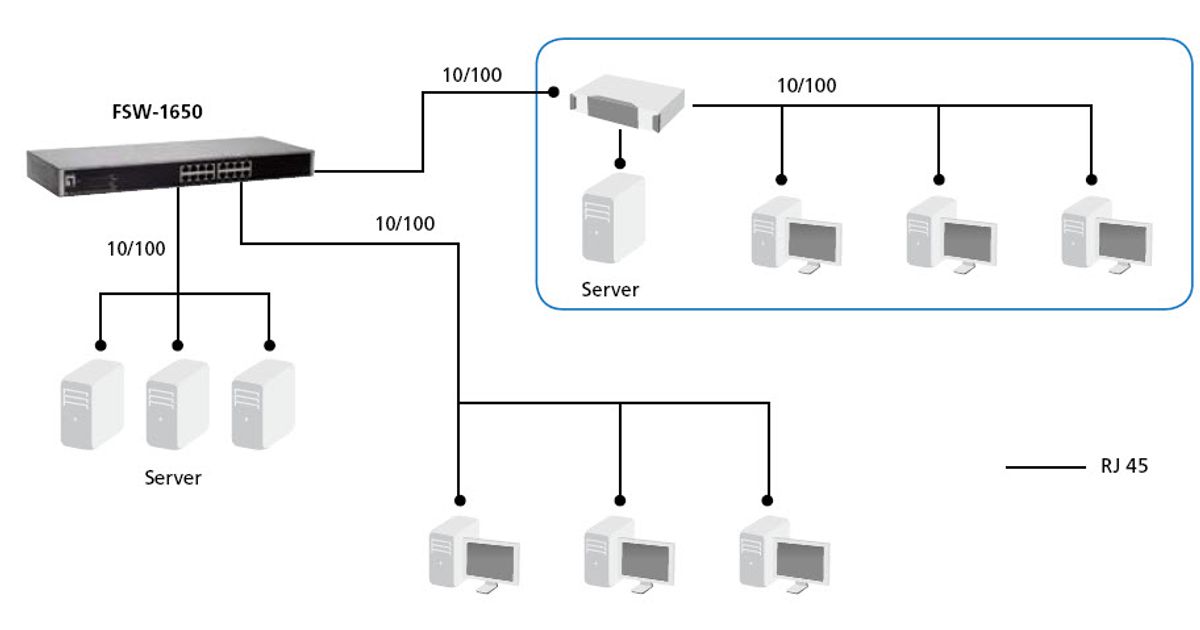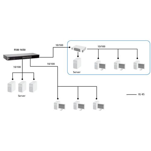 LevelOne FSW-1650, Mittejuhitav, Fast Ethernet (10/100), Täisdupleks, Püstikmontaaž
