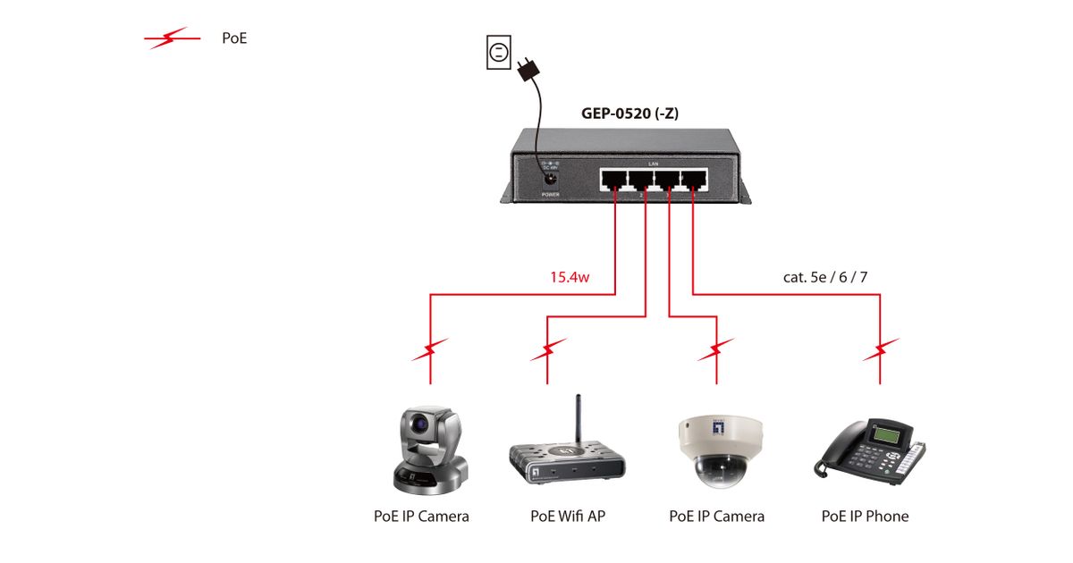 LevelOne GEP-0520, Gigabit Ethernet (10/100/1000), Power over Ethernet tugi
