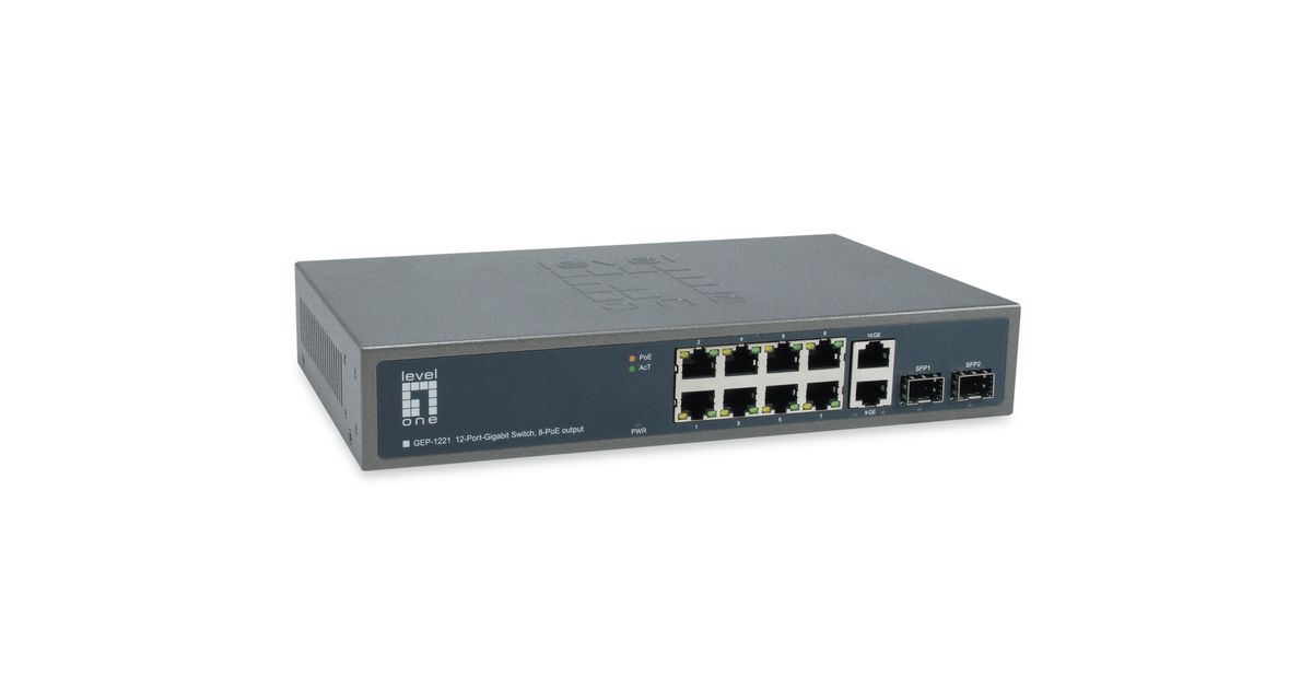 LevelOne GEP-1221, Mittejuhitav, Gigabit Ethernet (10/100/1000), Power over Ethernet tugi, Püstikmontaaž