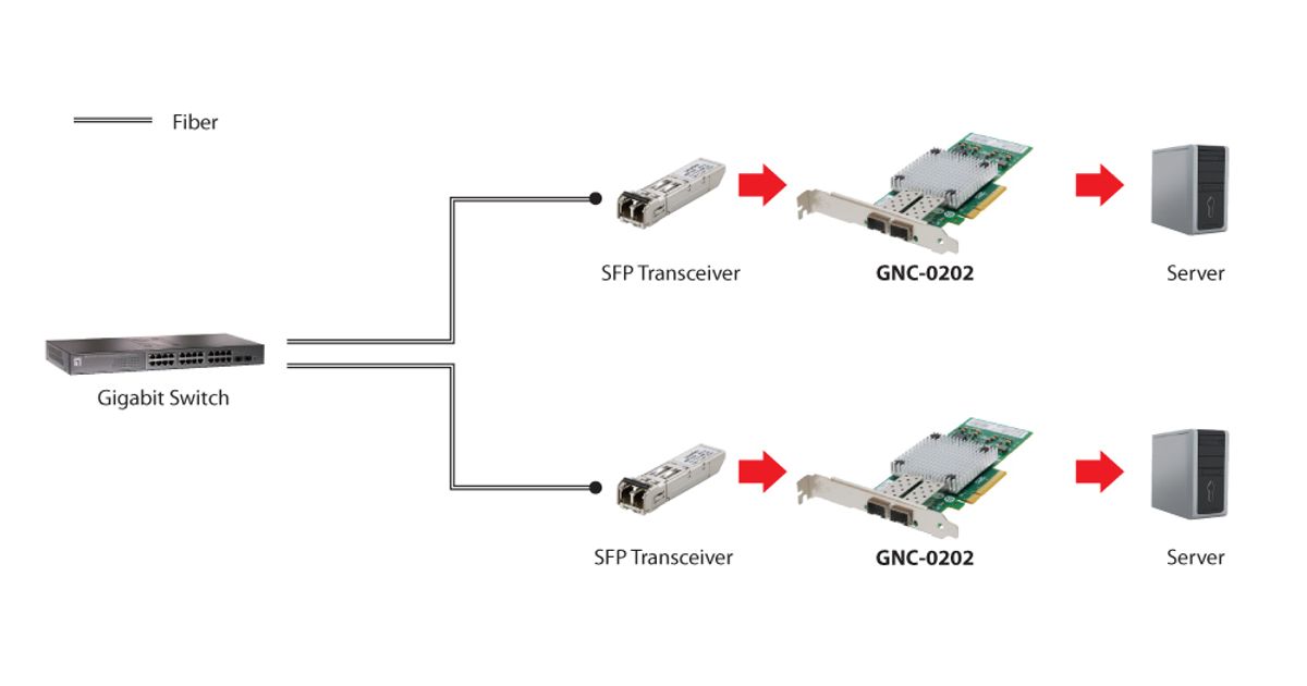 LevelOne GNC-0202, Sisemine, Juhtmega ühendatud, PCI Express, Kiud, Alumiinium