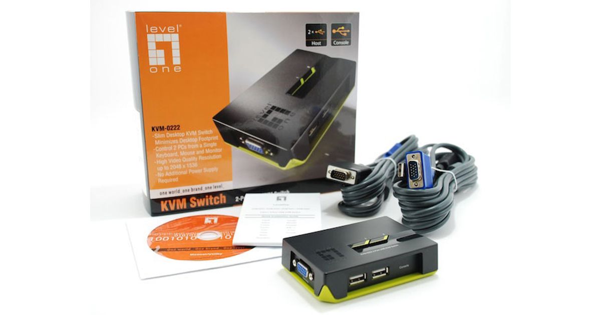 LevelOne KVM-0222, 2048 x 1536 pikslit, Must, Roheline