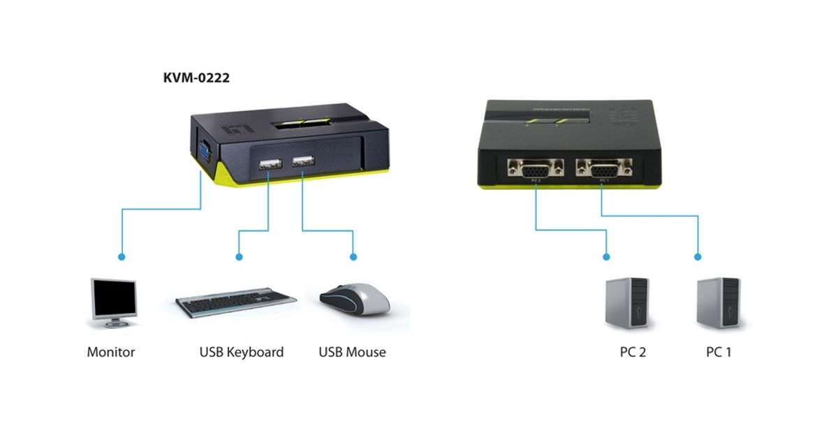 LevelOne KVM-0222 KVM-lüliti Must, Roheline