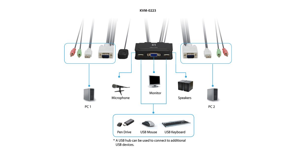 LevelOne KVM-0223 KVM-lüliti Must