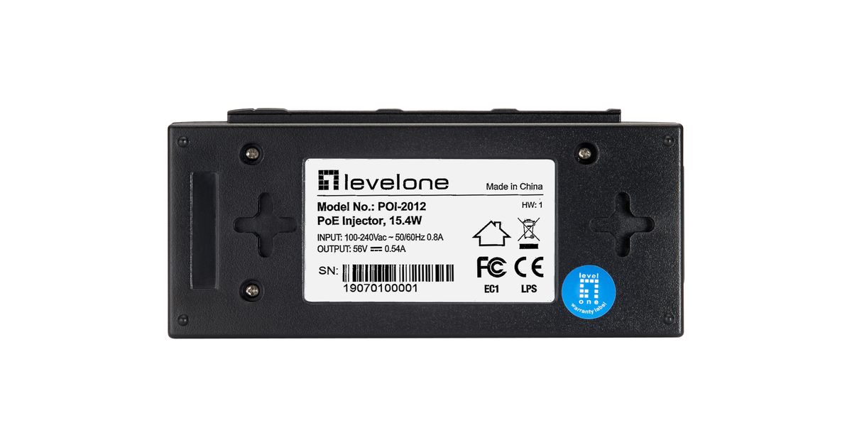 LevelOne POI-2012, Kiire Ethernet, 10,100 Mbit/s, IEEE 802.3, IEEE 802.3af, IEEE 802.3u, Must, 100 m, Internet elektrivõrgu kaudu (PoE), Võimsus