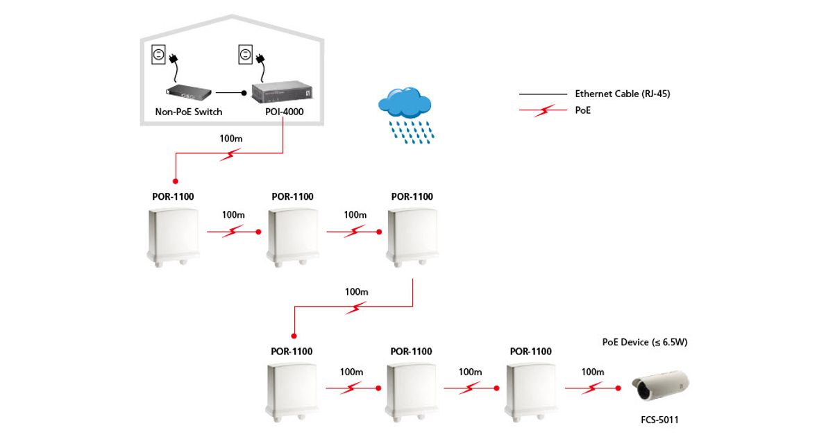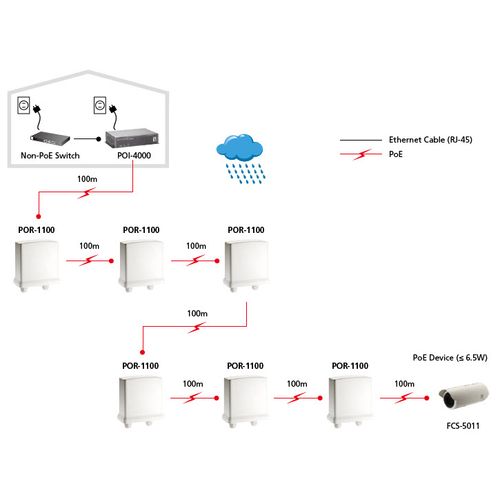 LevelOne POR-1100, Võrguvõimendi, 100 m, Cat5, Täisversioon, Pool, 10/100Base-T(X), IEEE 802.3af, IEEE 802.3x