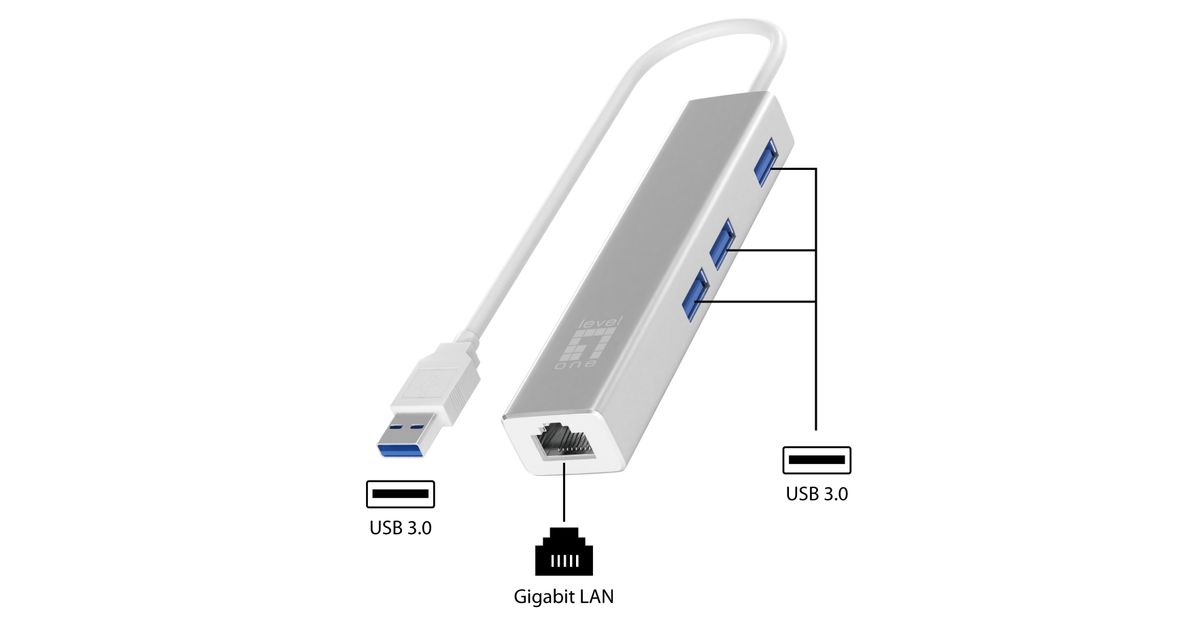 LevelOne USB-0503, Juhtmega ühendatud, USB, Ethernet, 1000 Mbit/s, Hõbe
