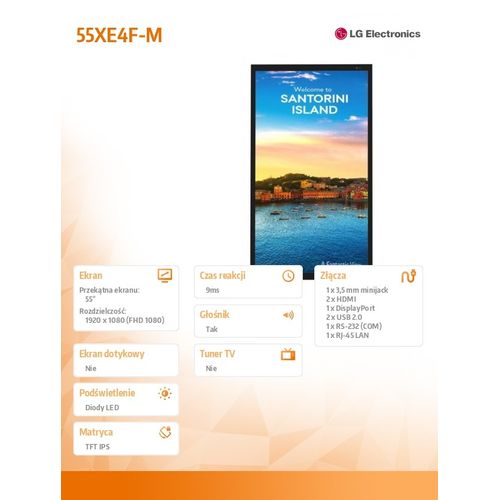 LG 55XE4F-M, 139,7 cm (55"), IPS, 1920 x 1080 pikslit, 4000 cd/m², Full HD, Direct-LED