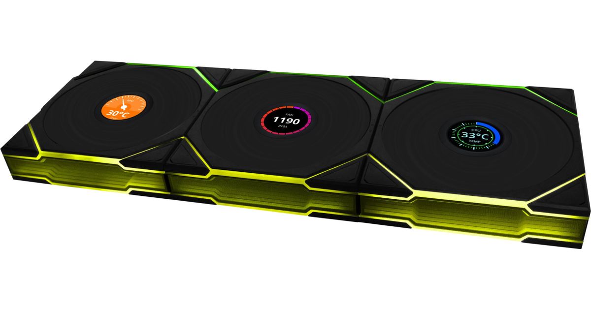 Lian Li UNI FAN TL Juhtmeta LCD ventilaator, ARGB, PWM, pakis 3 tk. kontroller - 120 mm, must