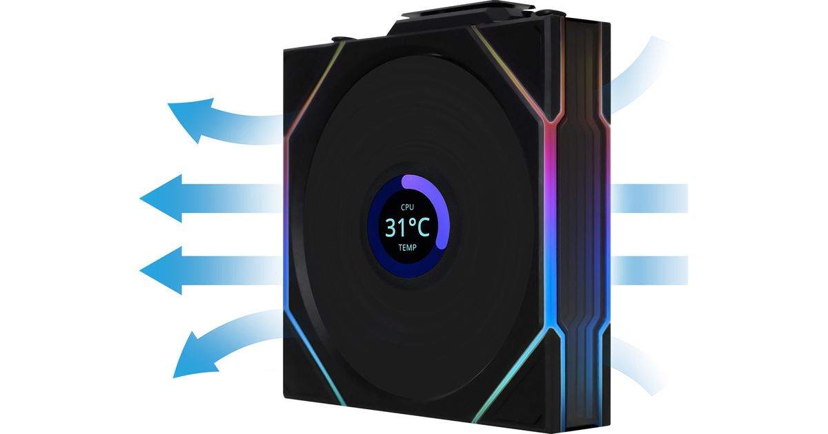 Lian Li UNI FAN TL Juhtmeta LCD-ventilaator, ARGB, PWM, pakis 3 tk. Kontroller - Reverse Blade, 120mm, must