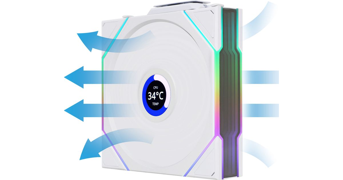 Lian Li UNI FAN TL Juhtmeta LCD-ventilaator, ARGB, PWM - tagurpidi tera, 120 mm, valge
