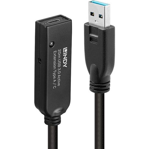 Lindy 20m USB 3.0 Aktivverlängerung Typ A an C 20m Verlängerung für ein USB Typ C Gerät an einem USB Typ A Computer (43375)