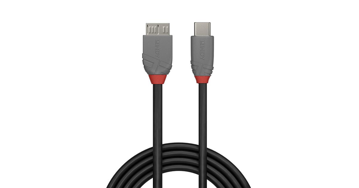 Lindy 36621, 1 m, USB C, Micro-USB B, USB 3.2 Gen 1 (3.1 Gen 1), 500 Mbit/s, Must