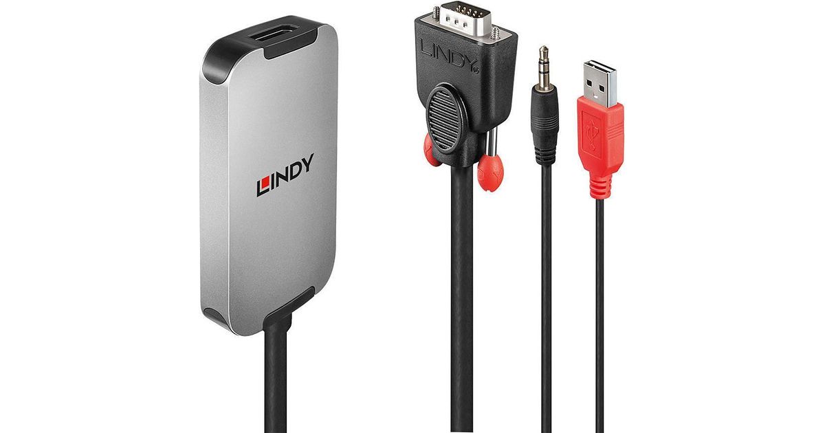 The Lindy VGA to DisplayPort Converter is a compact, premium solution for connecting a DisplayPort monitor or display to legacy VGA source devices. Supporting resolutions up to Full HD, this sleek converter is perfect for use in offices at home, in the workplace or in education, or for connecting analogue PC systems to eye-catching digital signage displays.