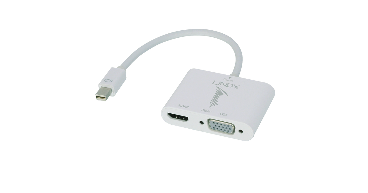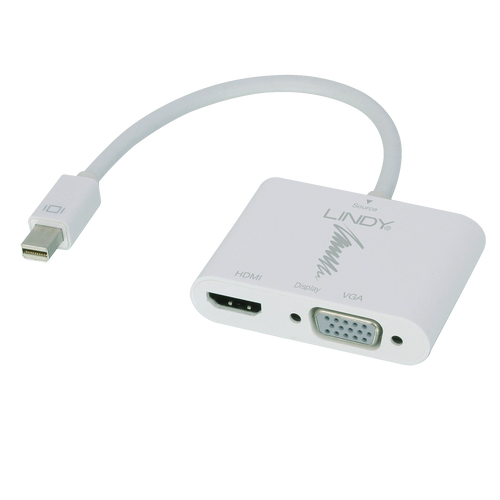 Lindy 41070, Mini DisplayPort, HDMI + VGA (D-Sub), Meessoost, Naissoost, Valge, 150 mm