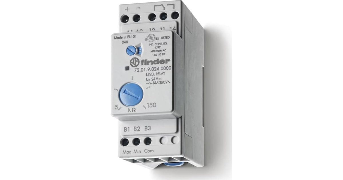 Liquid level control relay, tank drain / fill function, adjustable sensitivity 240V AC 72.01.8.240.0002
